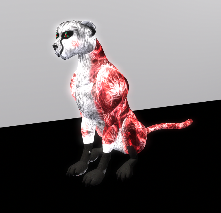 A red hide with black and white accents.